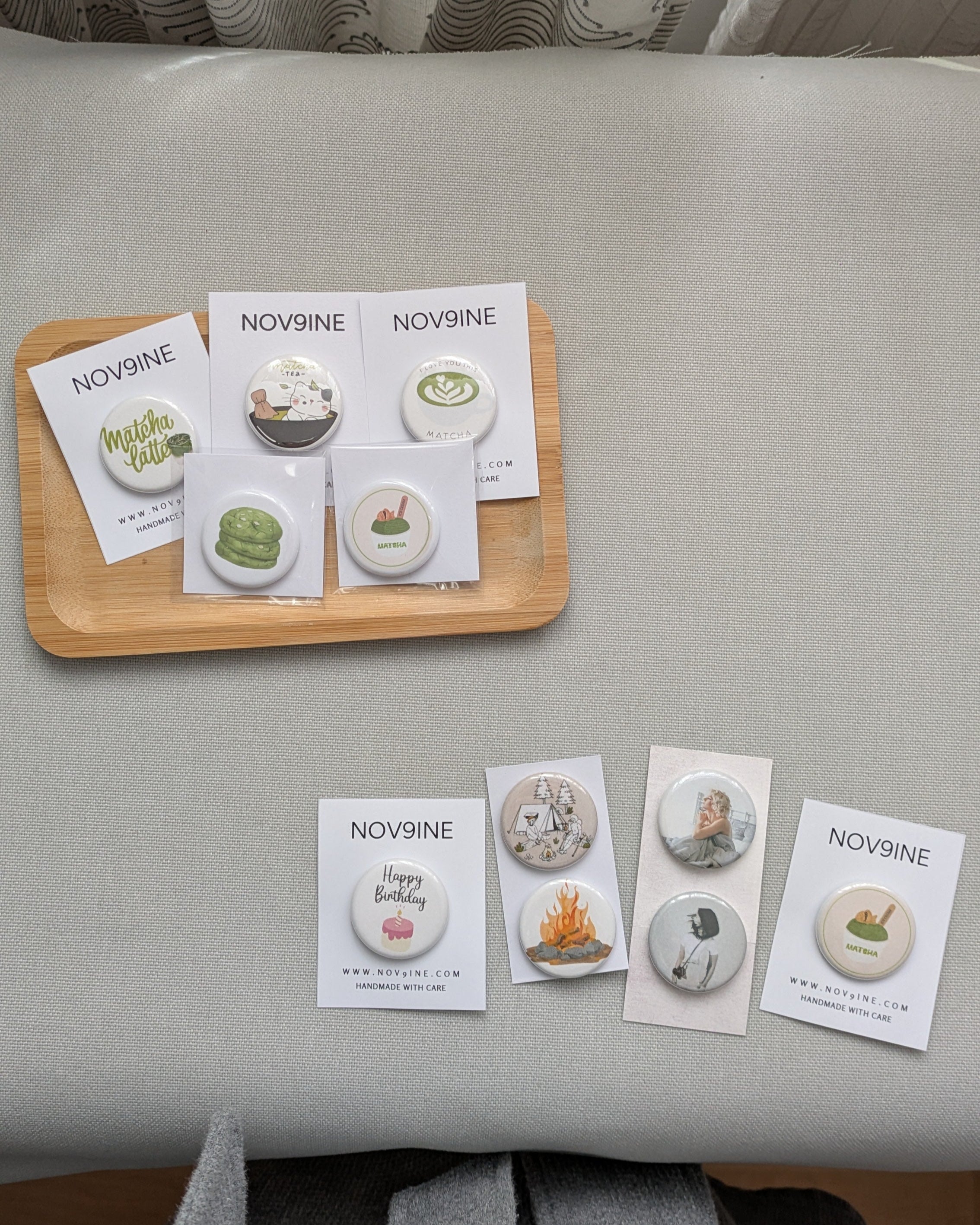 Nov9ine started from my love for capturing meaningful moments. I used to photograph couples and weddings, but over time I craved a slower, more intentional way to create. With a simple 1.25" button machine, a few ideas, and support from my brother, this little shop came to life. I later added the 2.25" size to offer a bolder option for those special keepsakes.