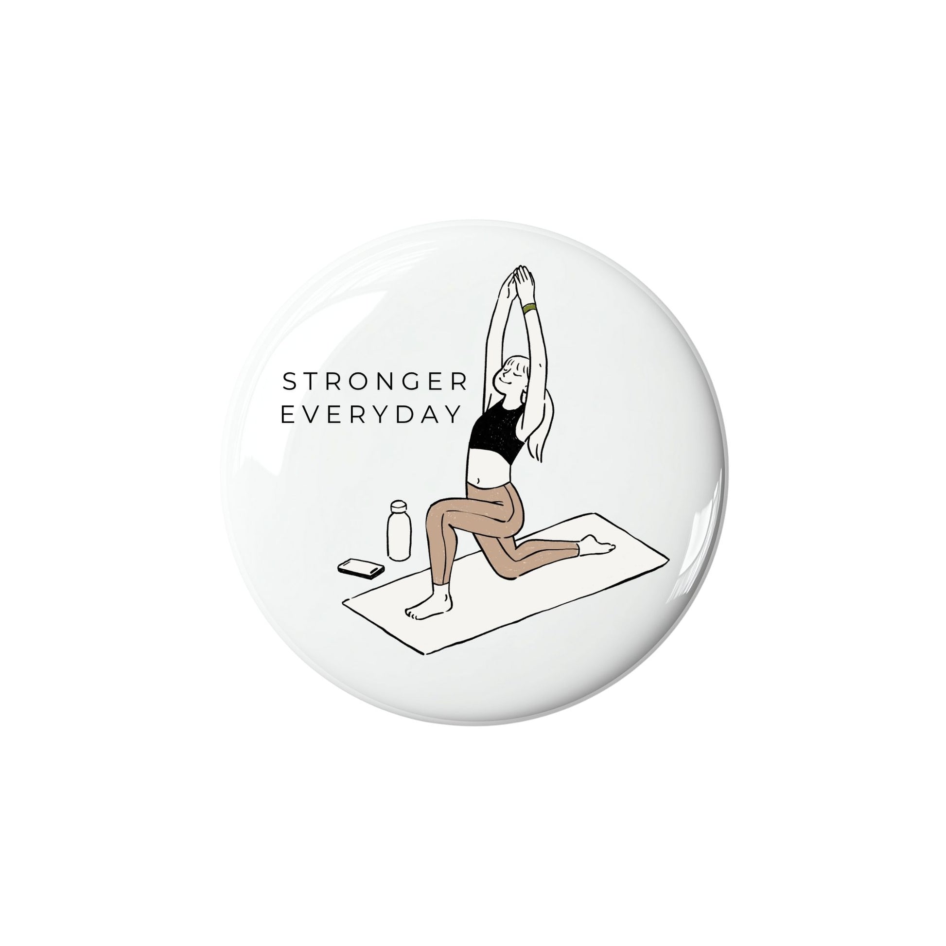 A daily dose of motivation in a tiny, powerful form. This pin-back button features a calm and focused yoga pose illustration paired with the uplifting reminder: "Stronger Every Day." Perfect for yogis, wellness lovers, or anyone on a journey of self-growth. Pin it to your tote, jacket, or yoga mat bag for that gentle encouragement every time you see it.